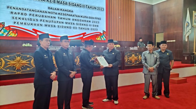 Rapat peripurna itu dipimpin ketua DPRD Murung Raya Dr. Doni, SP. M.SI, dengan agenda dalam rangka penandatanganan nota kesepakatan KUPA dan PPAS – RAPBD perubahan tahun anggaran 2023 sekaligus penutupan masa sidang II dan pembukaan masa sidang III tahun anggaran 2023.